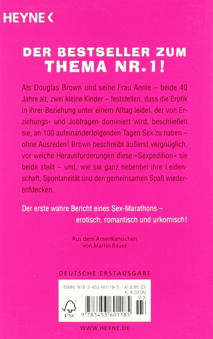 Als Douglas Brown und seine Frau Annie - beide 40 Jahre alt, zwei kleine Kinder - feststellen, dass die Erotik in ihrer Beziehung unter einem Alltag leidet, der von Erziehungs- und Jobfragen dominiert wird, beschließen sie, an 100 aufeinanderfolgenden Tagen Sex zu haben - ohne Ausreden! Brown beschreibt äußerst vergnüglich, vor welche Herausforderungen diese "Sexpedition" sie beide stellt - und wie sie ganz nebenbei ihre Leidenschaft, Spontaneität und den gemeinsamen Spaß wiederentdecken.