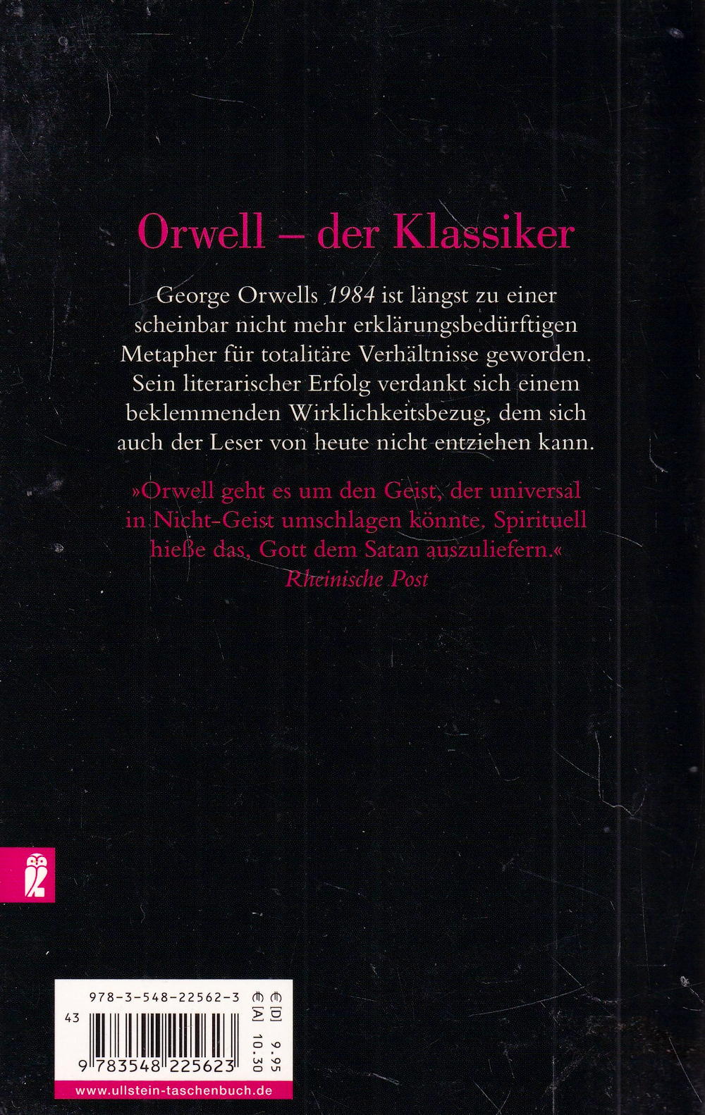 George Orwells 1984 ist längst zu einer scheinbar nicht mehr erklärungsbedürftigen Metapher für totalitäre Verhältnisse geworden. Mit atemberaubender Unerbittlichkeit zeichnet der Autor das erschreckende Bild einer durch und durch totalitären Gesellschaft, die bis ins letzte Detail durchorganisierte Tyrannei einer absolute autoritären Staatsmacht. Seine düstere Vision hat einen beklemmenden Wirklichkeitsbezug, dem sich auch der Leser von heute nur schwer entziehen kann.