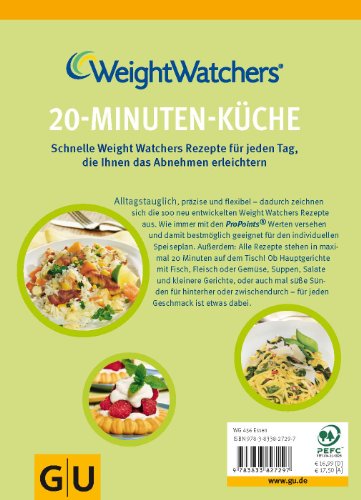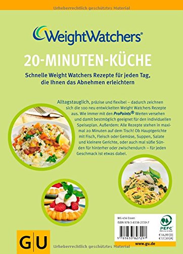 Abnehmen kann, muss aber nicht schwer sein. Und welche Frau legt nicht, gerade im Frühjahr, Wert auf ihre Figur. Aber: Alleine dran zu bleiben ist ein schwieriges Unterfangen. Dank der Organisation Weight Watchers ist es schon Tausenden von Frauen gelungen, abzunehmen und dauerhaft schlank zu bleiben. Klar, eine gewisse Umstellung ist das schon. Aber Weight Watchers garantiert: wirklich erfolgreiches Abnehmen. Und schmecken soll es ausserdem noch. Alltagstauglich, präzise und flexibel - dadurch zeichnen sich die 100 neu entwickelten Weight-Watchers-Rezepte aus. Und dann stehen sie auch alle noch in maximal 20 Minuten auf dem Tisch. Ob Hauptgerichte mit Fisch, Fleisch oder Gemüse, Suppen, Salat und kleinere Gerichte - oder auch mal süsse Sünden für hinterher oder zwischendurch.
