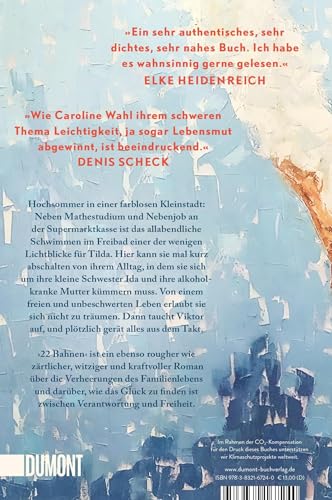 Tildas Tage sind strikt durchgetaktet: studieren, an der Supermarktkasse sitzen, sich um ihre kleine Schwester Ida kümmern und an schlechten Tagen auch um die Mutter. Zu dritt wohnen sie im traurigsten Haus der Fröhlichstrasse in einer Kleinstadt, die Tilda hasst. Ihre Freunde sind längst weg, leben in Amsterdam oder Berlin, nur Tilda ist geblieben. Denn irgendjemand muss für Ida da sein, Geld verdienen, die Verantwortung tragen. Nennenswerte Väter gibt es keine, die Mutter ist alkoholabhängig. Eines Tages aber geraten die Dinge in Bewegung: Tilda bekommt eine Promotion in Berlin in Aussicht gestellt, und es blitzt eine Zukunft auf, die Freiheit verspricht. Und Viktor taucht auf, der grosse Bruder von Ivan, mit dem Tilda früher befreundet war. Viktor, der genau wie sie immer 22 Bahnen schwimmt. Doch als Tilda schon beinahe glaubt, es könnte alles gut werden, gerät die Situation zu Hause vollends ausser Kontrolle.