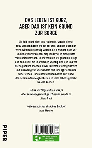 Die Zeit reicht nicht aus – niemals. Gerade einmal 4000 Wochen haben wir auf der Erde, und das auch nur, wenn wir um die achtzig werden. Kein Wunder, dass wir unaufhörlich versuchen, möglichst viel in diese kurze Zeit hineinzupressen. Dabei verlieren wir genau die Dinge aus dem Blick, die uns wirklich wichtig sind und uns vor allem glücklich machen. Oliver Burkeman führt geistreich und kurzweilig vor, wie wir dem Zeit- und Effizienzdruck widerstehen – und damit der unerhörten Kürze und den schillernden Möglichkeiten unseres Lebens gerecht werden können.