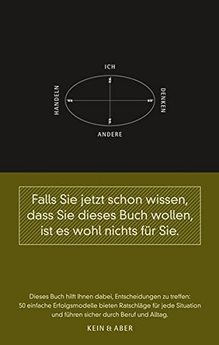 Wie treffe ich die richtige Entscheidung? Was verraten meine Freunde über mich? Lebe ich im Jetzt? Warum kaufe ich immer Dinge, die ich gar nicht brauche? Was sagt meine Musiksammlung über mich aus? Wann ist der Zeitpunkt für eine Veränderung? Dieses Buch ist ein Arbeitsbuch. Die Modelle können abgeschrieben, ausgefüllt, weiterentwickelt werden. Egal, ob eine schwerwiegende Entscheidung vor Ihnen liegt oder ein langer Streit hinter Ihnen, ob Sie jemand anders oder sich selbst besser verstehen wollen dieses Buch ist die Anleitung. Und die Antwort sind Sie selbst.