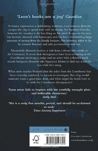 As Venice experiences a debilitating heatwave, Commissario Brunetti escapes the city to spend time with his family. For Ispettore Vianello, however, the weather is the last thing on his mind. It appears his aunt has become obsessed with horoscopes and has been withdrawing large amounts of money from the family business. Not knowing what to do, he consults Brunetti and asks permission to trail her.