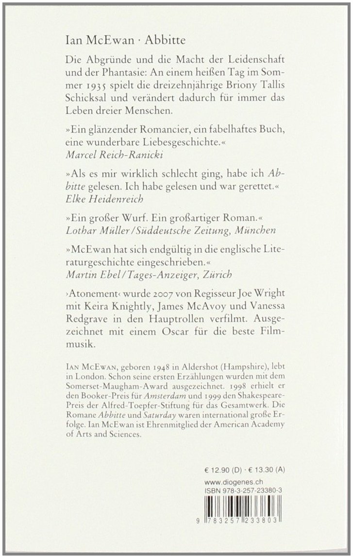 Ian McEwan, geboren 1948, lebt in London. Schon seine ersten Erzählungen wurden 1976 mit dem Somerset-Maugham-Award ausgezeichnet. 1999 erhielt er den Shakespeare-Preis der Alfred-Toepfer-Stiftung für das Gesamtwerk und 2011 wurde er mit dem Jerusalem Preis für Literatur ausgezeichnet. Ian McEwan ist Ehrenmitglied der American Academy of Arts and Sciences.