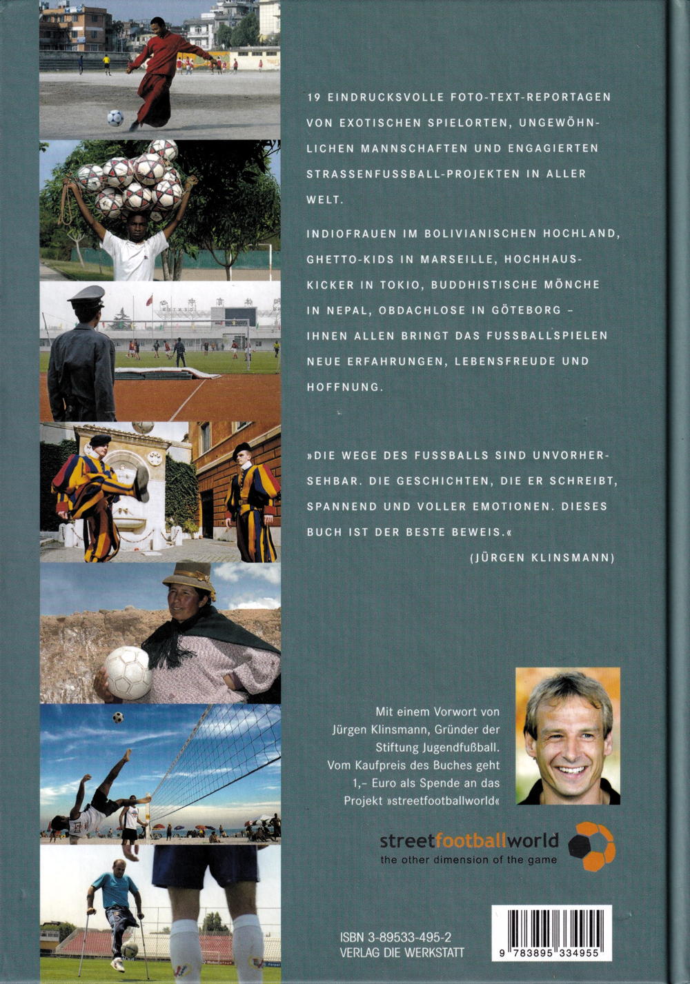 19 EINDRUCKSVOLLE FOTO-TEXT-REPORTAGEN VON EXOTISCHEN SPIELORTEN, UNGEWÖHN-LICHEN MANNSCHAFTEN UND ENGAGIERTEN STRASSENFUSSBALL-PROJEKTEN IN ALLER WELT.