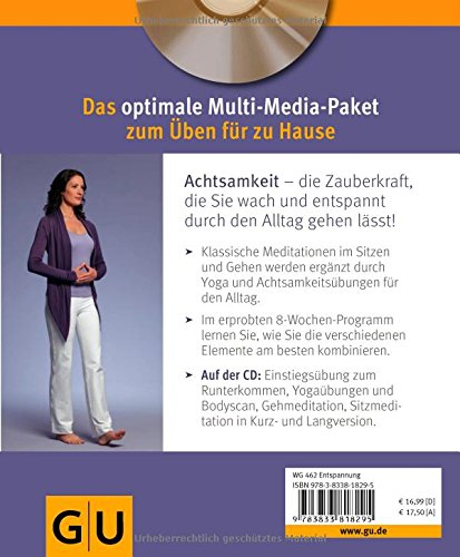 Wie ist es möglich, inmitten der vielfältigen Herausforderungen unseres Alltags die eigene Mitte nicht zu verlieren? Die innere Ruhe zu bewahren? Die Mindfulness Based Stress Reduction-Methide - zu Deutsch: Stressreduktion durch Achtsamkeit - zeigt Ihnen einen Weg, Stresssituationen ruhiger und gelassener zu meistern und so Gesundheit und Wohlbefinden zu stärken. Jan Thorsten Esswein, Physiotherapeut, Yoga- und Achtsamkeitstrainer, stellt Ihnen in seinem Buch die zentralen Elemente des MBSR-Konzeptes vor: Lernen Sie die Wirkweise kennen. Beginnen Sie dann, angeleitet in Wort und Bild, mit den formellen Achtsamkeitsübungen wie Bodyscan, Bewegungsübungen, Päckchenpacken, Geh- und Sitzmeditation. Ergänzend gibt es Anregungen, wie Sie mit kleinen Veränderungen achtsamer im Alltag werden können. Im erprobten 8-Wochen-Programm lernen Sie, wie Sie die verschiedenen Elemente am besten kombinieren. Auf der 70-minütigen Übungs-CD werden alle formellen Achtsamkeitsübungen ausführlich angeleitet.