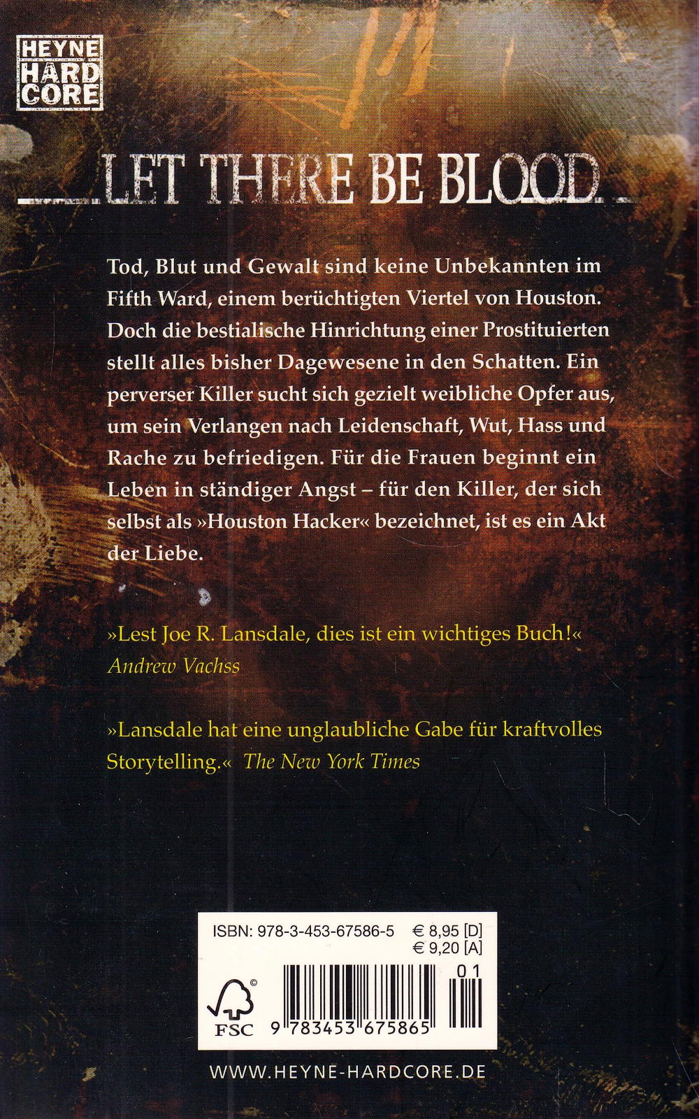 Tod, Blut und Gewalt sind keine Unbekannten im Fifth Ward, einem berüchtigten Viertel von Houston. Doch die bestialische Hinrichtung einer Prostituierten stellt alles bisher Dagewesene in den Schatten. Ein perverser Killer sucht sich gezielt weibliche Opfer aus, um sein Verlangen nach Leidenschaft, Wut, Hass und Rache zu befriedigen. Für die Frauen beginnt ein Leben in ständiger Angst - für den Killer, der sich selbst als "Houston Hacker" bezeichnet, ist es ein Akt der Liebe.