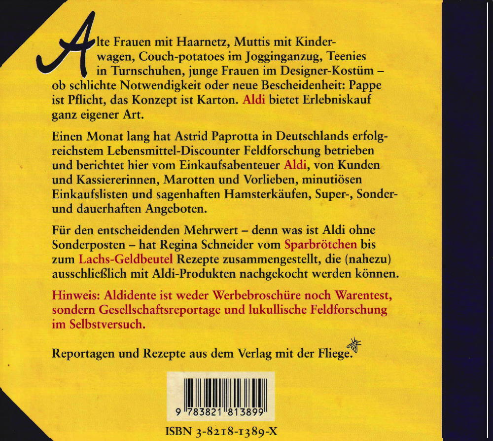 Einen Monat lang hat Astrid Paprotta in Deutschlands erfolgreichstem Lebensmittel-Discounter Feldforschung betrieben und berichtet hier vom Einkaufsabenteuer Aldi, von Kunden und Kassiererinnen, Marotten und Vorlieben, minutiösen Einkaufslisten und sagenhaften Hamsterkäufen, Super-, Sonderund dauerhaften Angeboten.