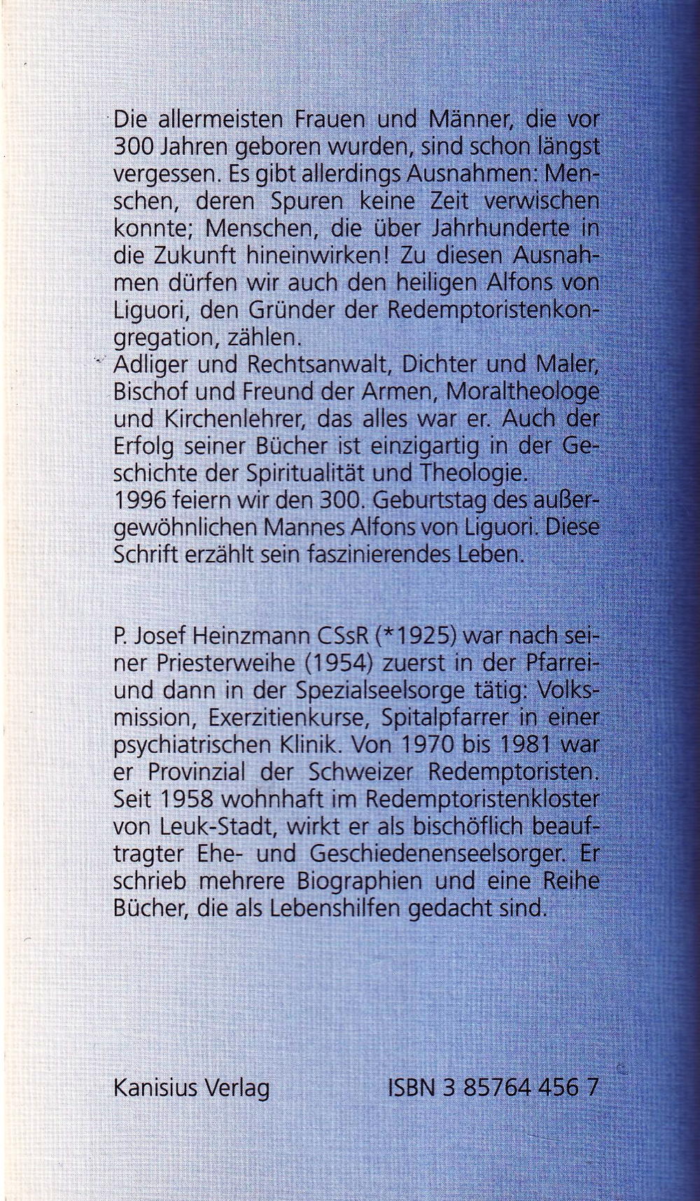 1996 feiern wir den 300. Geburtstag des aussergewöhnlichen Mannes Alfons von Liguori. Diese Schrift erzählt sein faszinierendes Leben.