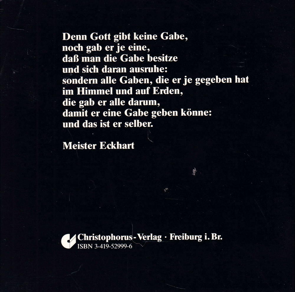 Denn Gott gibt keine Gabe, noch gab er je eine, dass man die Gabe besitze und sich daran ausruhe: sondern alle Gaben, die er je gegeben hat im Himmel und auf Erden, die gab er alle darum, damit er eine Gabe geben könne: und das ist er selber.