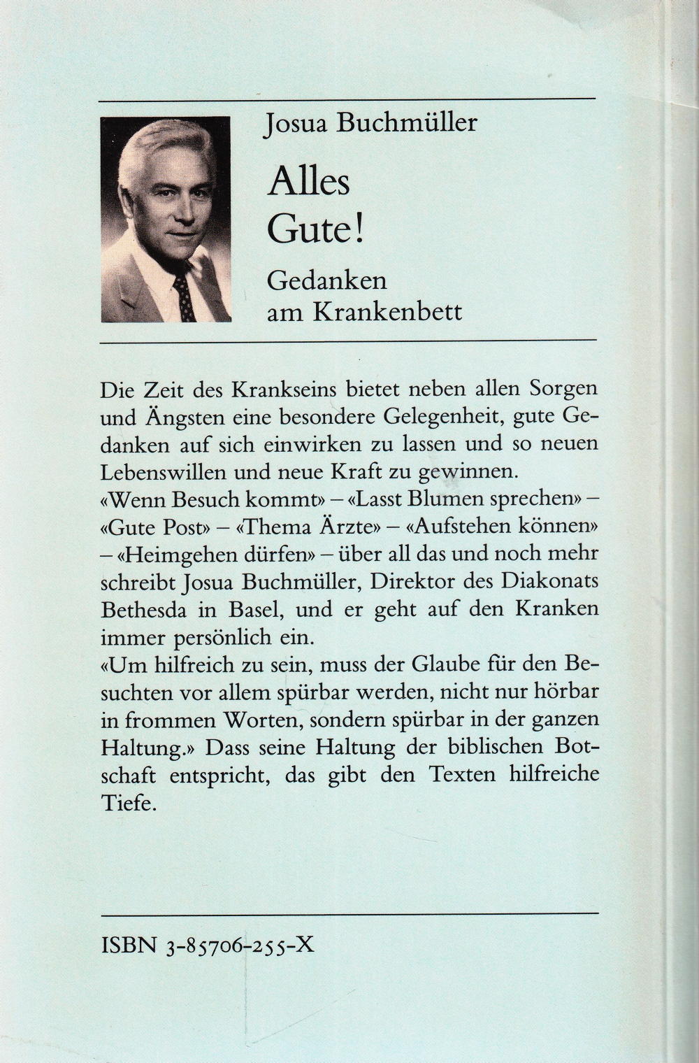 «Wenn Besuch kommt» - «Lasst Blumen sprechen» - «Gute Post» – «Thema Ärzte» – «Aufstehen können» – «Heimgehen dürfen» – über all das und noch mehr schreibt Josua Buchmüller, Direktor des Diakonats Bethesda in Basel, und er geht auf den Kranken immer persönlich ein.