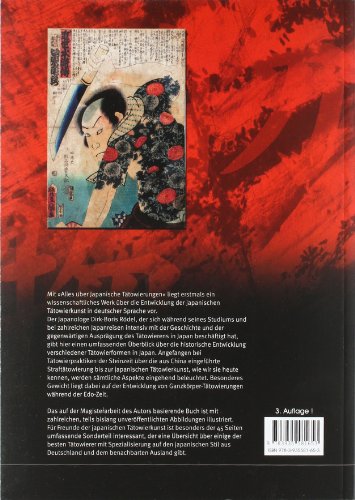 Die japanische Tätowierkunst geniesst unter Anhängern der Körperkunst weltweit grosses Ansehen. Der japanische Tätowierstil übt seit der zweiten Hälfte der letzten Jahrhunderts einen beständig starken Einfluss auf die westliche Form des Tätowierens aus. Nicht nur japanische Tätowiermeister werden regelmässig auf internationale Tätowiermessen eingeladen, auch heute noch reisen Tätowierer aus Europa, Australien oder Amerika nach Japan, um sich dort Inspirationen zu holen. In Japan selbst erfahren tätowierte Japaner eine starke Ablehnung, was darin begründet liegt, dass Träger von Tätowierungen sehr häufig der yakuza, der japanischen Mafia, angehören. Der Autor und Chefredakteur des Tätowier-Magazins stellt die japanische Tätowierkunst, die auf die Edo-Zeit fokussiert ist, dar. In jener Zeit also, in der sich dieses Kunsthandwerk herausbildete. Er verliert dabei jedoch nicht die Vorläufer dieser Kunst sowie die heutigen Ausprägungen des Tätowierens aus den Augen. Das Buch bietet nicht nur gr undsätzlich Informationen zur Entwicklung der japanischen Tätowierkunst, sondern behandelt auch den überaus interessanten Bereich japanischer Kultur, um sie den japanologisch, aber auch den kunsthistorisch, soziologisch oder spirituell Interessierten zugänglich zu machen.