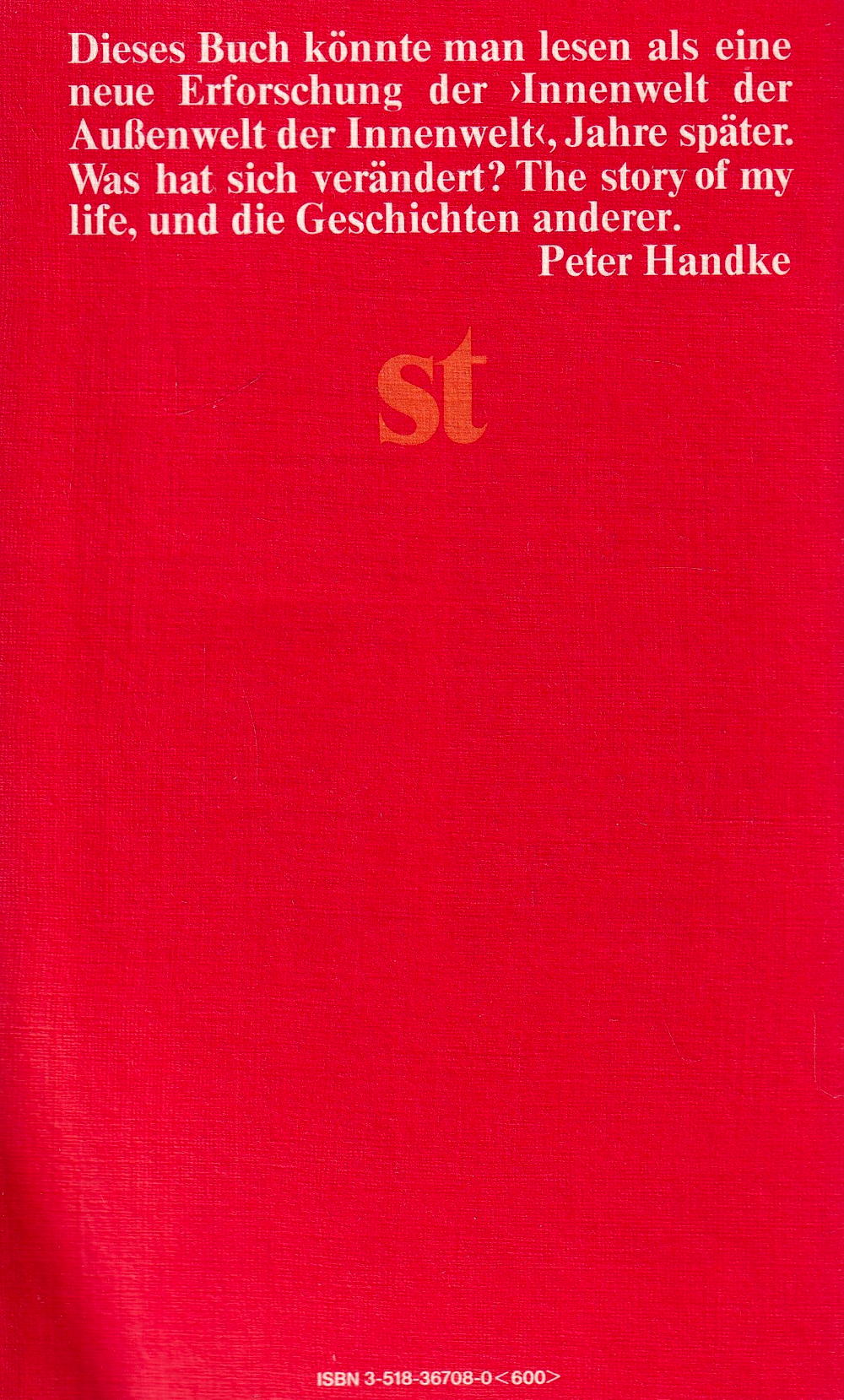 Dieses Buch könnte man lesen als eine neue Erforschung der> Innenwelt der Aussenwelt der Innenwelt <, Jahre später.
