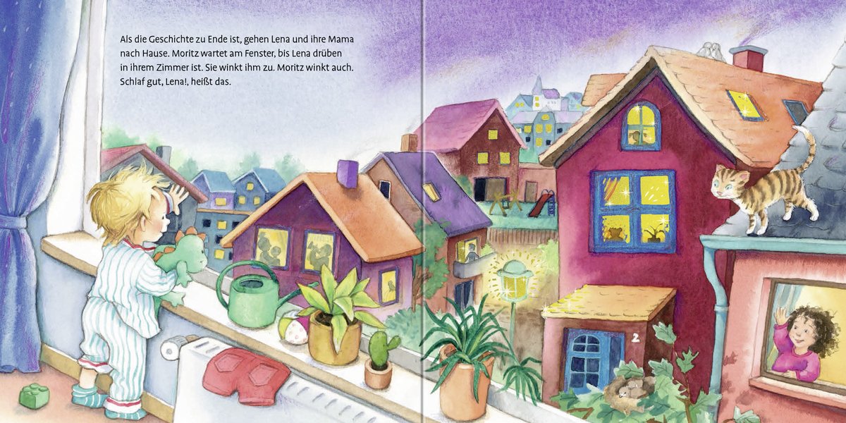 Dieses stimmungsvolle Buch begleitet Moritz und seine Geschwister durch die Zeit vor dem Schlafengehen. Draussen ist es schon dunkel, aber im Haus leuchten viele verschiedene Lichter. Mit glitzernder Goldfolie auf vielen Seiten.