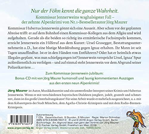 Kommissar Hubertus Jennerwein gönnt sich eine Auszeit. Aber schon vor der geplanten Abreise trifft er auf dem Bahnhof einen Kommissar-Kollegen aus dem Allgäu und wird aufgehalten. Gerade als die beiden so richtig ins ermittlerische Fachsimpeln kommen, erreicht Jennerwein ein Hilferuf aus dem Kurort: Ursel Grasegger, Bestattungsunternehmerin a.D., hat eine blutige Morddrohung gegen Ignaz erhalten. Ihr Mann ist seit Tagen unauffindbar. Ist er in den Händen von Entführern? Oder hat er heimlich etwas Illegales geplant, was nun schiefgegangen ist? Jennerwein weiss nur zu gut, dass die Graseggers beste Mafiaverbindungen haben. Aber er verspricht Ursel, Ignaz' Spur ausserdienstlich zu verfolgen - und bringt sich in noch nie gekannte Gefahr. Sein Team geht derweil tödlichen Umtrieben von Medizinern nach, eine frühere Freundin von Ignaz kündigt ihre bevorstehende Ermordung an, und auf einmal steht Jennerwein vor dem Abgrund seiner Polizeikarriere...