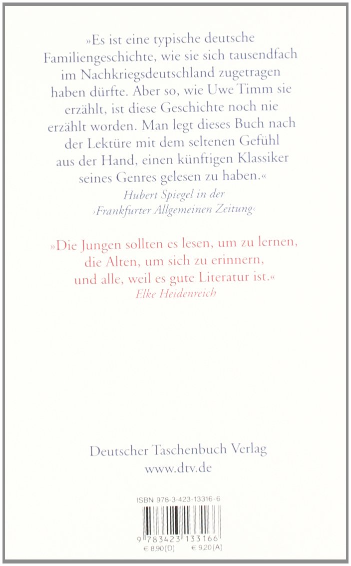 "Abwesend und doch anwesend hat er mich durch meine Kindheit begleitet, in der Trauer der Mutter, den Zweifeln des Vaters, den Andeutungen zwischen den Eltern. Von ihm wurde erzählt, das waren kleine, immer ähnliche Situationen, die ihn als mutig und anständig auswiesen. Auch wenn nicht von ihm die Rede war, war er doch gegenwärtig, gegenwärtiger als andere Tote, durch Erzählungen, Fotos und in den Vergleichen des Vaters, die mich, den Nachkömmling, einbezogen." Wer war dieser Karl-Heinz Timm, geboren 1924 in Hamburg, gestorben 1943 in einem Lazarett in der Ukraine? Warum hat er sich freiwillig zur Waffen-SS gemeldet? Wie ging er mit der Verpflichtung zum Töten um? Welche Optionen hatte er, welche Möglichkeiten blieben ihm verschlossen? Wo ist der Ort der Schuld, wo der des Gewissens bei den Eltern, die ihn überlebt haben?
