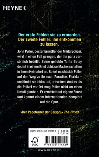 Der erste Fehler: sie zu ermorden. Der zweite Fehler: ihn entkommen zu lassen. John Puller ist der beste Ermittler der Militärpolizei. Sein neuer Fall trifft ihn persönlich: Seine geliebte Tante deutet in einem Brief dubiose Machenschaften in ihrem Heimatort an. Sofort reist Puller zu ihr nach Paradise, Florida – und findet sie leblos auf, ertrunken. Anders als die Polizei vor Ort mag Puller nicht an einen Unfall glauben. Und tatsächlich häufen sich bald die Hinweise auf ein Verbrechen von gigantischen Ausmassen.