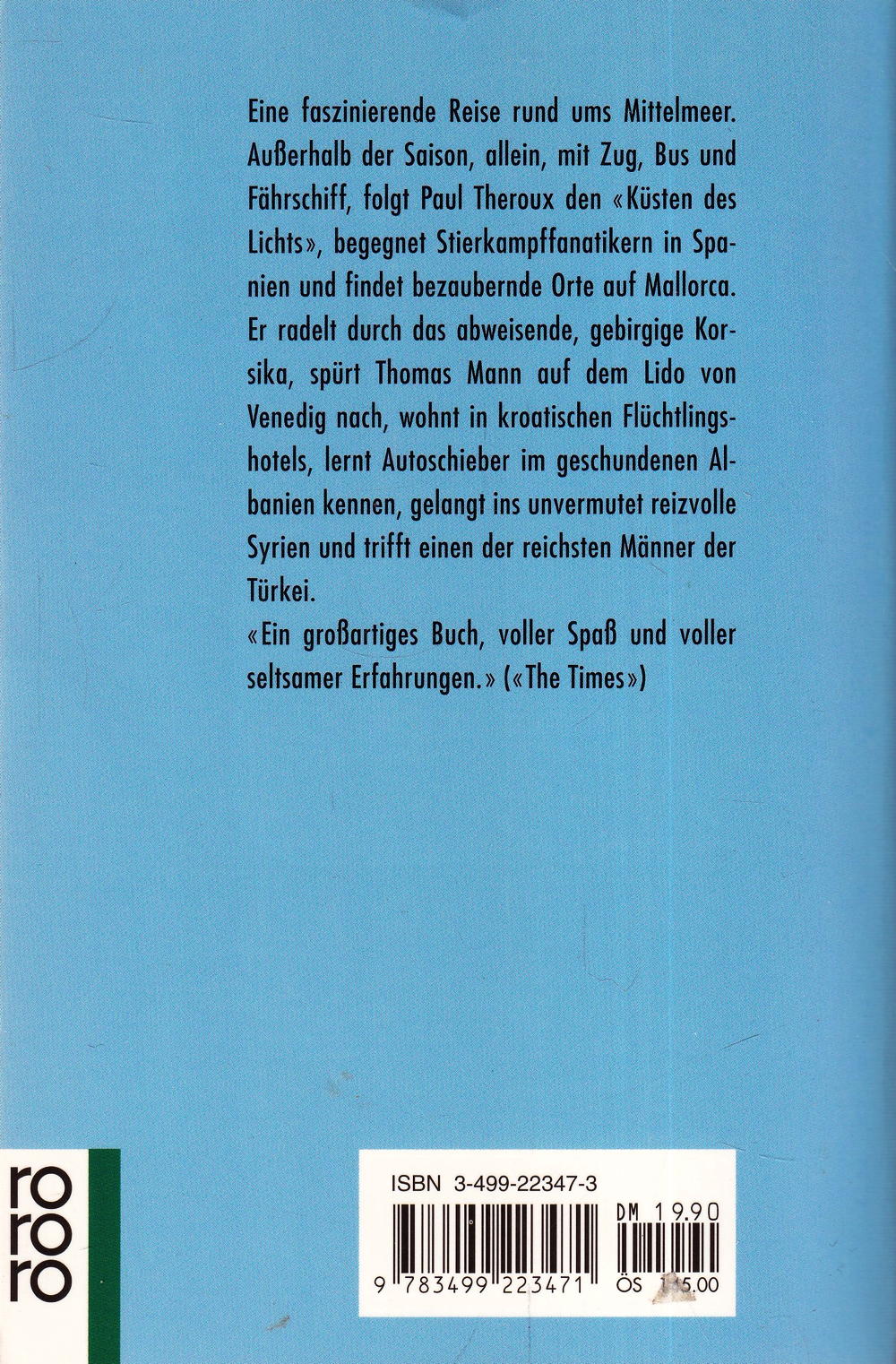 "Das ganze Ufer wollte ich sehen, von den Fish-and-Chips-Läden in Torremolinos über die Geschützstellungen in Tel Aviv, den Krieg in Kroatien und die Nacktbadestrände von Kreta." Mit Zug, Bus und Schiff folgte der bekannte Reiseschriftsteller Paul Theroux den "Küsten des Lichts", begegnete Stierkampffanatikern, fand einsame Plätze auf der Touristeninsel Mallorca, radelte durch die hügelige Toskana, wandelte auf Thomas Manns Spuren in Venedig, wohnte in kroatischen Flüchtlingshotels, lernte Autoschieber in Albanien kennen, durchquerte Anatolien, besuchte das geteilte Zypern, langweilte sich auf einem Luxuskreuzschiff.