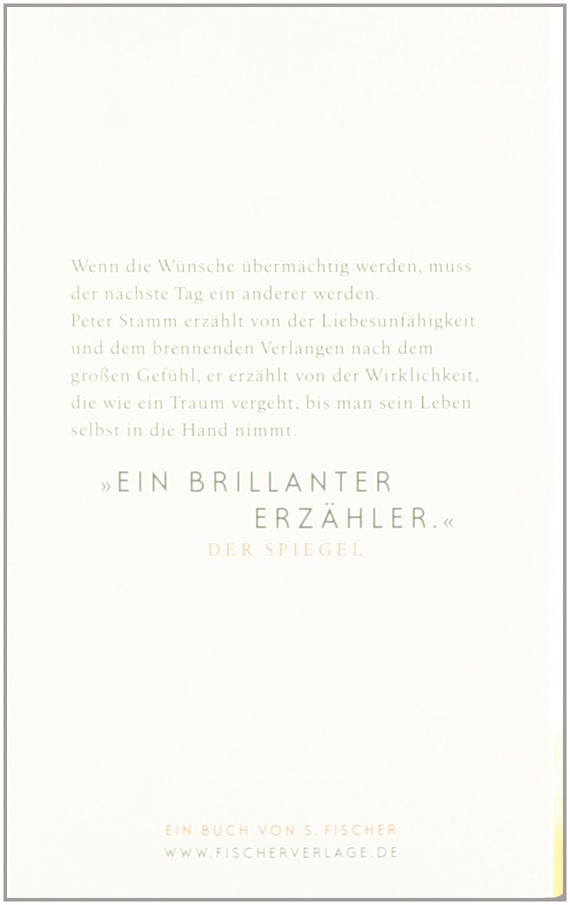 Peter Stamm, geboren 1963, studierte nach einer kaufmännischen Lehre einige Semester Anglistik, Psychologie, Psychopathologie und Wirtschaftsinformatik. Längere Aufenthalte in Paris, New York und Skandinavien. Er lebt mit seiner Familie in Winterthur. Peter Stamm arbeitete in verschiedenen Berufen, unter anderem in Paris und New York, seit 1990 als freier Autor und Journalist. Er schrieb mehr als ein Dutzend Hörspiele. 2012 wurde Peter Stamm mit dem Bodensee-Literaturpreis der Stadt Überlingen ausgezeichnet, 2013 wurde er Mainzer Stadtschreiber und 2014 wurde ihm der Friedrich-Hölderlin-Preis der Stadt Bad Homburg verliehen.