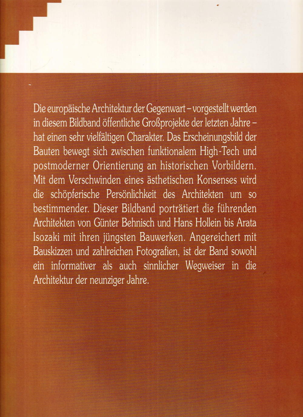 Die europäische Architektur der Gegenwart - vorgestellt werden in diesem Bildband öffentliche Grossprojekte der letzten Jahre hat einen sehr vielfältigen Charakter. Das Erscheinungsbild der Bauten bewegt sich zwischen funktionalem High-Tech und postmoderner Orientierung an historischen Vorbildern.