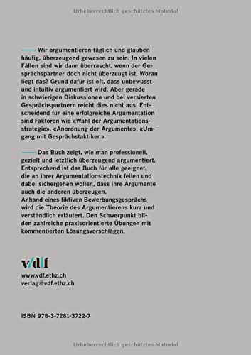 Wir argumentieren täglich und glauben häufig, überzeugend gewesen zu sein. In vielen Fällen sind wir dann überrascht, wenn der Gesprächspartner doch nicht überzeugt ist. Woran liegt das? Grund dafür ist oft, dass unbewusst und intuitiv argumentiert wird. Aber gerade in schwierigen Diskussionen und bei versierten Gesprächspartnern reicht dies nicht aus. Entscheidend für eine erfolgreiche Argumentation sind Faktoren wie 'Wahl der Argumentationsstrategie', 'Anordnung der Argumente', 'Umgang mit Gesprächstaktiken'. Das Buch zeigt, wie man professionell, gezielt und letztlich überzeugend argumentiert. Entsprechend ist das Buch für alle geeignet, die an ihrer Argumentationstechnik feilen und dabei sichergehen wollen, dass ihre Argumente auch die anderen überzeugen. Anhand eines fiktiven Bewerbungsgesprächs wird die Theorie des Argumentierens kurz und verständlich erläutert. Den Schwerpunkt bilden zahlreiche praxisorientierte Übungen mit kommentierten Lösungsvorschlägen.