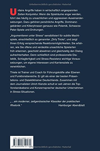 "Argumentieren unter Stress" gibt einen Überblick über die wichtigsten Methoden unfairer Dialektik und zeigt Reaktionsmöglichkeiten und Abwehrstrategien für Stress-Situationen.