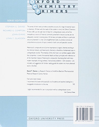 This is a truly excellent slim volume ... and will serve as a useful springboard between homocyclic aromatic chemistry and the more advanced works on heterocyclic chemistry.'R.M. Scrowston! Education in Chemistry! July 1993. Zusammenfassung Heterocyclic compounds are of prime importance to organic chemists working in the chemical industry! and heterocyclic chemistry is therefore a fundamental topic in undergraduate chemistry courses. The emphasis of this short text is on synthetic aspects rather than properties! and it covers the essential details and basic principles with reference to all the important classes of heterocyclic compounds. Instructional problems are included as an aid to comprehension!and references to more detailed texts are provided. Klappentext Heterocyclic compounds are of prime importance to organic chemists working in the chemical industry! and heterocyclic chemistry is therefore a fundamental topic in undergraduate chemistry courses. The emphasis of this short text is on synthetic aspects! rather than properties! and it covers the essential details and basic principles with reference to all the important classes of heterocyclic compounds. Instructional problems are included as an aid to comprehension! and references to more detailed texts are provided. Inhaltsverzeichnis Introduction; Pyrroles! thiophenes and furans; Indoles! benzothiophenes and benzofurans; Imidazoles and pyrazoles; Oxazoles and isoxazoles; Thiazoles and isothiazoles; Oxadiazoles! triazines! and tetrazines; Pyridines and diazines; Pyrones! chromones! and coumarins; Purines! pyrimidines! and pteridines; Reduced heterocycles.