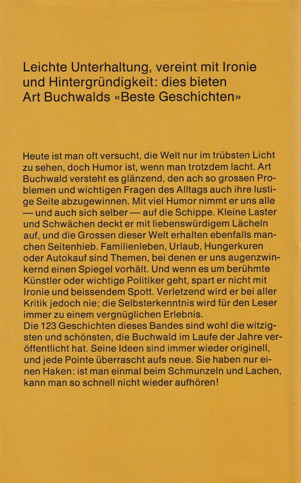 Leichte Unterhaltung, vereint mit Ironie und Hintergründigkeit: dies bieten Art Buchwalds "Beste Geschichten"