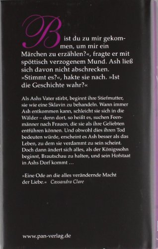 Als Ashs Vater stirbt, zeigt die Stiefmutter ihr wahres Gesicht und beginnt, das Mädchen wie eine Sklavin zu behandeln. Wann immer Ash ihr entkommen kann, schleicht sie sich in die tiefen Wälder denn dort, so heisst es, suchen die betörend schönen Feenmänner nach Frauen, um sie als ihre Geliebten mit in ihr Reich zu nehmen. Obwohl dies ihren Tod bedeuten würde, erscheint es Ash doch besser zu sein als das trostlose Leben, zu dem sie verdammt ist. Doch dann ändert sich alles, als der Königssohn beginnt, Brautschau zu halten: Als sein Hofstaat auch in Ashs Dorf kommt, trifft sie einen ganz besonderen Menschen, der ihr Leben auf ungeahnte Weise verändert ...