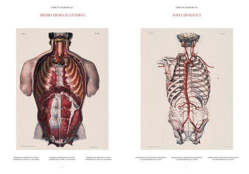 Die präzise wie auch ästhetische Darstellung verweist geradezu auf die vorausgegangenen Laboruntersuchungen, die Grundlage jeder einzelnen zeichnerischen Umsetzung bilden. Durch die aufwändige Kolorierung werden die Tafeln schliesslich zum erlesensten Anschauungsmaterial, wie ein Vergleich mit unkolorierten Ausgaben sehr deutlich werden lässt. In den acht Bänden dokumentieren die anatomischen Darstellungen u.a. den Skelett- und Bewegungsapparat, die inneren Organsysteme, den Brust-, Bauch- und Beckenraum, das Blut- und Lymphgefässsystem, das zentrale und periphere Nervensystem - einschliesslich der Sinnesorgane. Zwei Bände sind der chirurgischen Anatomie und ihren Techniken, ein Band der mikroskopischen Anatomie gewidmet. Dieses in Vergessenheit geratene Standardwerk der Medizingeschichte bleibt bis heute unübertroffen in der Darstellungsweise! Und es war nur eine Frage der Zeit, einen Reprint der 726 Farbtafeln - einschliesslich der sieben Falttafeln - erstmals einem grossem Publikum zugänglich zu machen.