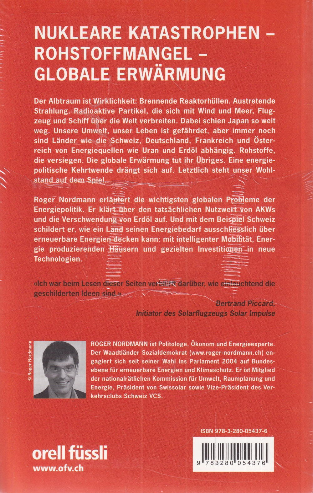 Der Albtraum ist Wirklichkeit: Brennende Reaktorhüllen, austretende radioaktive Strahlung, Strahlenpartikel, die sich mitWind und Meer, Flugzeug und Schiff über die Welt verbreiten. Dabei scheint Japan so weit weg. Unsere Umwelt, unser Lebenist gefährdet, aber immer noch sind Länder wie die Schweiz, Deutschland, Frankreich und Österreich von Energiequellen wieUran und Erdöl abhängig. Eine energiepolitische Kehrtwende ist dringend nötig.Roger Nordmann erläutert die wichtigsten globalen Probleme der Energiepolitik. Er klärt über den tatsächlichen Nutzwert von AKWs auf und schildert, wie Europa seinen Energiebedarf ausschliesslich über erneuerbare Energien decken kann: Mit intelligenter Mobilität, Energie produzierenden Häusern und gezielten Investitionen in neue Technologien.