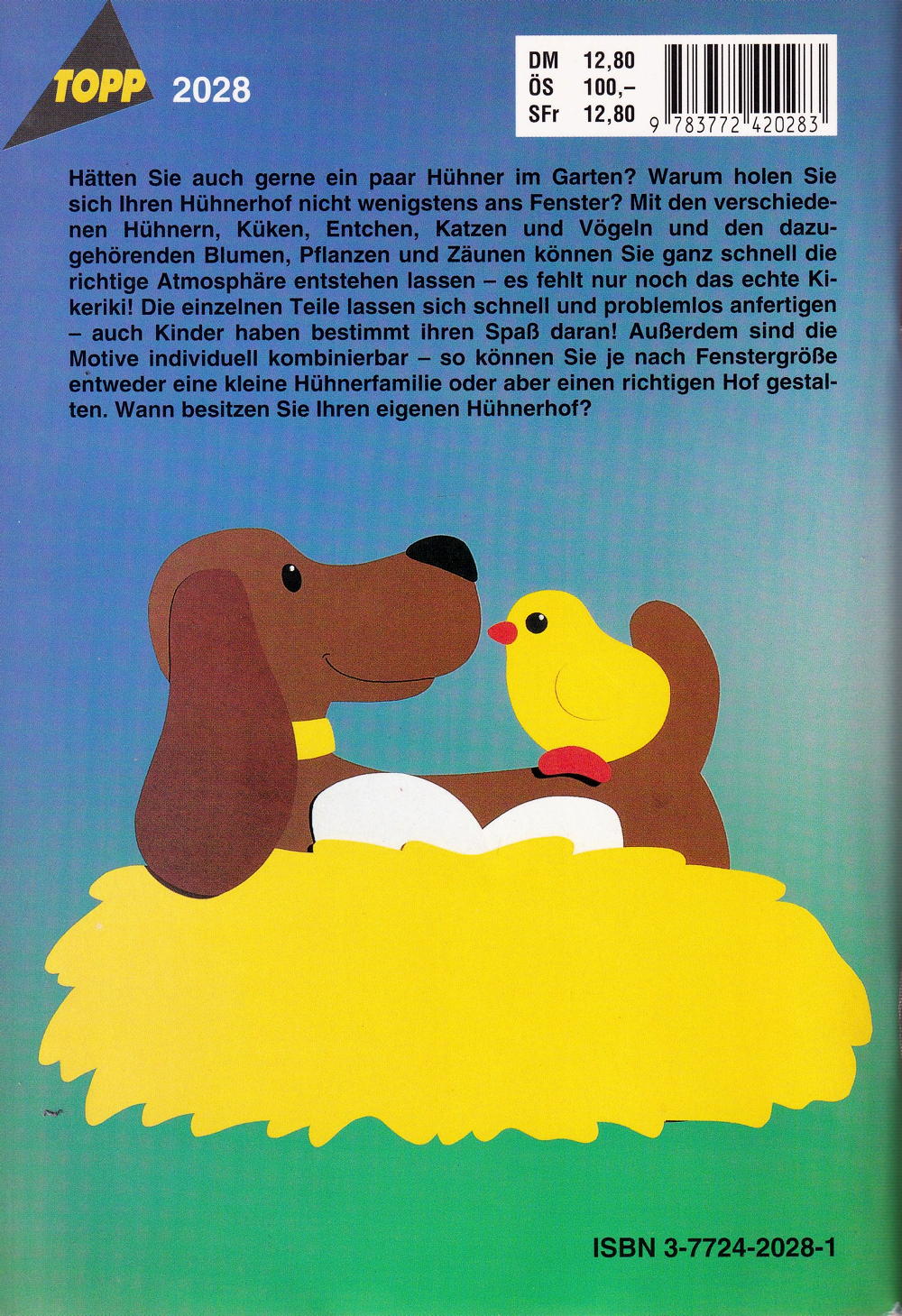 Hätten Sie auch gerne ein paar Hühner im Garten? Warum holen Sie sich Ihren Hühnerhof nicht wenigstens ans Fenster? Mit den verschiedenen Hühnern, Küken, Entchen, Katzen und Vögeln und den dazugehörenden Blumen, Pflanzen und Zäunen können Sie ganz schnell die richtige Atmosphäre entstehen lassen - es fehlt nur noch das echte Kikeriki! Die einzelnen Teile lassen sich schnell und problemlos anfertigen - auch Kinder haben bestimmt ihren Spass daran! Ausserdem sind die Motive individuell kombinierbar - so können Sie je nach Fenstergrösse entweder eine kleine Hühnerfamilie oder aber einen richtigen Hof gestalten. Wann besitzen Sie Ihren eigenen Hühnerhof?