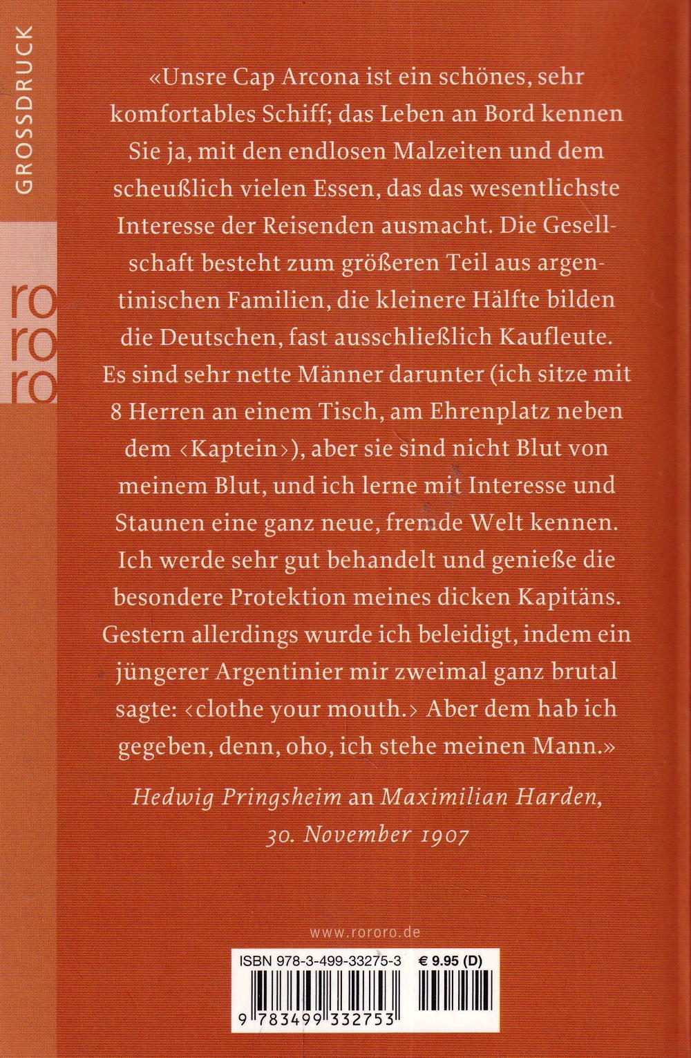 Im Winter 1907/08 reiste Hedwig Pringsheim nach Argentinien und Chile, um ihren dorthin verbannten Sohn Erik zu besuchen. Was sie erlebte, hielt sie in einem Tagebuch fest: Inge und Walter Jens schildern eine abenteuerliche Reise und porträtieren eine ganz besondere Frau.