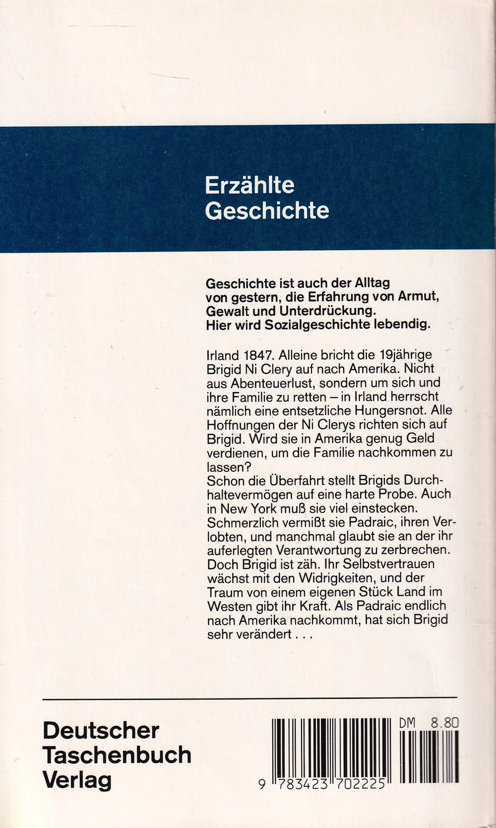 Doch Brigid ist zäh. Ihr Selbstvertrauen wächst mit den Widrigkeiten, und der Traum von einem eigenen Stück Land im Westen gibt ihr Kraft. Als Padraic endlich nach Amerika nachkommt, hat sich Brigid sehr verändert...