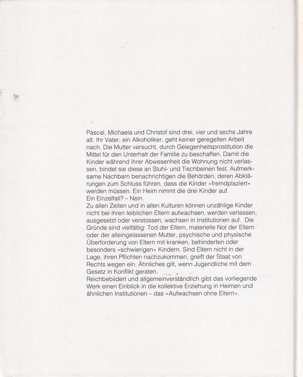Reichbebildert und allgemeinverständlich gibt das vorliegende Werk einen Einblick in die kollektive Erziehung in Heimen und ähnlichen Institutionen das «Aufwachsen ohne Eltern».