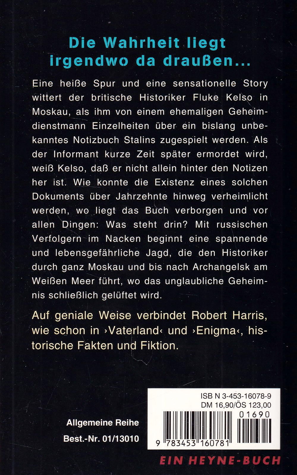 Eine heisse Spur und eine sensationelle Story wittert der britische Historiker Fluke Kelso in Moskau, als ihm von einem ehemaligen Geheimdienstmann Einzelheiten über ein bislang unbekanntes Notizbuch Stalins zugespielt werden. Als der Informant kurze Zeit später ermordet wird, weiss Kelso, dass er nicht allein hinter den Notizen her ist. Wie konnte die Existenz eines solchen Dokuments über Jahrzehnte hinweg verheimlicht werden, wo liegt das Buch verborgen und vor allen Dingen: Was steht drin? Mit russischen Verfolgern im Nacken beginnt eine spannende und lebensgefährliche Jagd, die den Historiker durch ganz Moskau und bis nach Archangelsk am Weissen Meer führt, wo das unglaubliche Geheimnis schliesslich gelüftet wird.