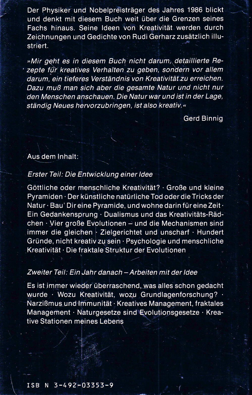 Ein Gedankensprung · Dualismus und das Kreativitäts-Rädchen · Vier grosse Evolutionen – und die Mechanismen sind immer die gleichen · Zielgerichtet und unscharf · Hundert Gründe, nicht kreativ zu sein · Psychologie und menschliche Kreativität · Die fraktale Struktur der Evolutionen Zweiter Teil: Ein Jahr danach – Arbeiten mit der Idee Es ist immer wieder überraschend, was alles schon gedacht wurde · Wozu Kreativität, wozu Grundlagenforschung?