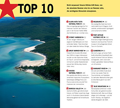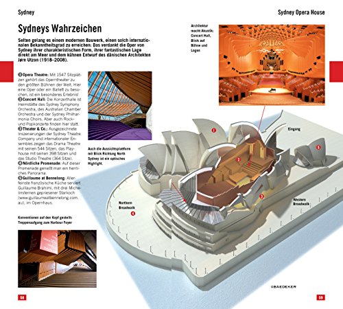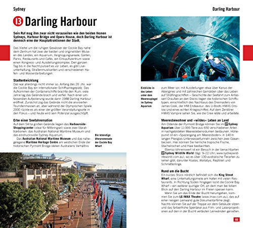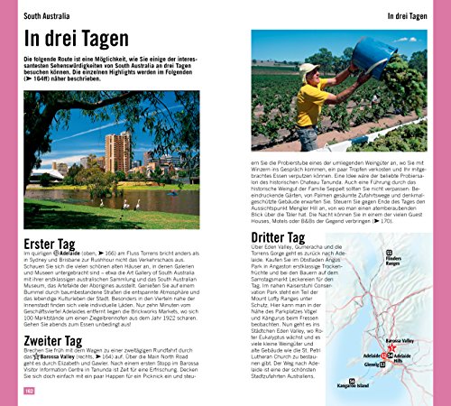 In acht nach Regionen gegliederten Kapiteln werden die wichtigsten und interessantesten Sehenswürdigkeiten vorgestellt und auf erlebnisreichen Tagestouren erkundet, die natürlich auch Zeit für genussvolle Pausen einplanen. Detailreiche 3D-Grafiken blicken in die Oper von Sydney und den Regierungsbezirk von Canberra. Abgeschlossen werden die einzelnen Kapitel mit den Beschreibungen ausgewählter Restaurants, der besten Shoppingmeilen und der attraktivsten Ausgeh-Adressen. Auf Spaziergängen entlang der Mosman Bay oder auf einer Tour durch die Southern Highlands kann man die vielen verschiedenen Facetten von Down Under kennenlernen.