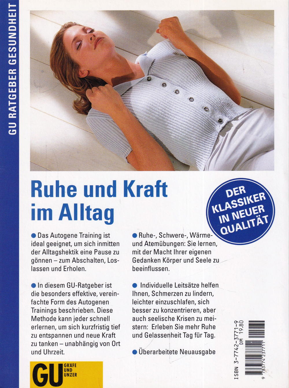 In diesem GU-Ratgeber ist die besonders effektive, vereinfachte Form des Autogenen Trainings beschrieben. Diese Methode kann jeder schnell erlernen, um sich kurzfristig tief zu entspannen und neue Kraft zu tanken – unabhängig von Ort und Uhrzeit.