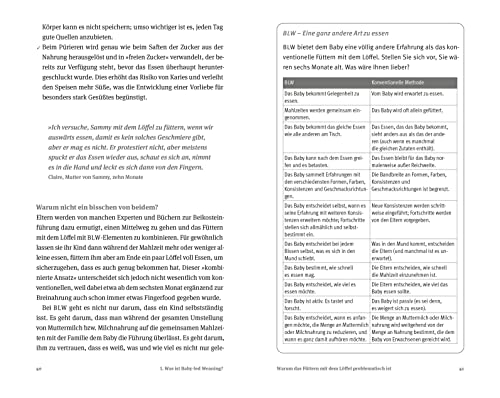 Beim Erfolgskonzept Baby-led Weaning (kurz BLW) bekommen Kinder ab dem Beikostalter statt Brei feste Nahrung angeboten, die sie selbstständig essen können. BLW unterstützt das Kind in seinen Entwicklungsschritten, fördert seine Eigenständigkeit, macht Schluss mit den gewohnten »Brei-Fütter-Schlachten« und hilft Kindern, ernährungsbewusste Erwachsene zu werden. Mit diesem Grundlagenbuch von Rapley und Murkett wurde BLW auch in Deutschland populär. Unter Berücksichtigung des neuesten Stands der Wissenschaft wurde es komplett überarbeitet und erweitert. Ergänzt wurden u. a. neueste Informationen zu Allergien, sicherem Füttern und der Anwendung von BLW in der Kinderbetreuung.