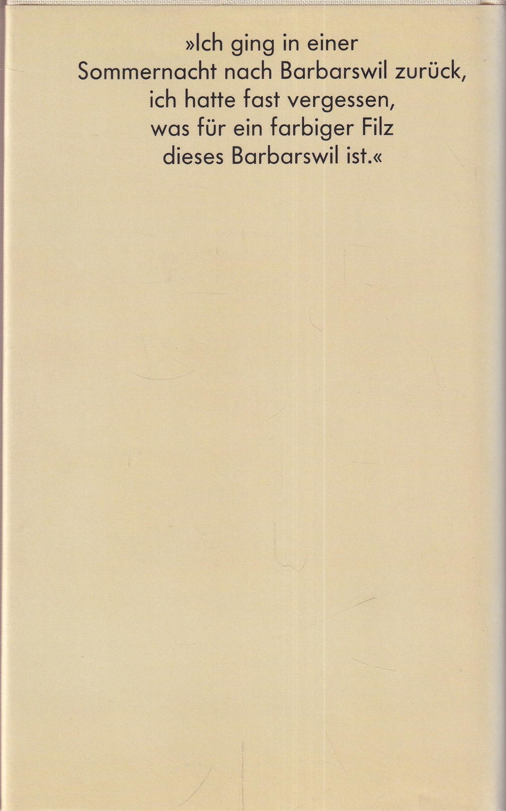 »lch ging in einer Sommernacht nach Barbarswil zurück, ich hatte fast vergessen, was für ein farbiger Filz dieses Barbarswil ist. «