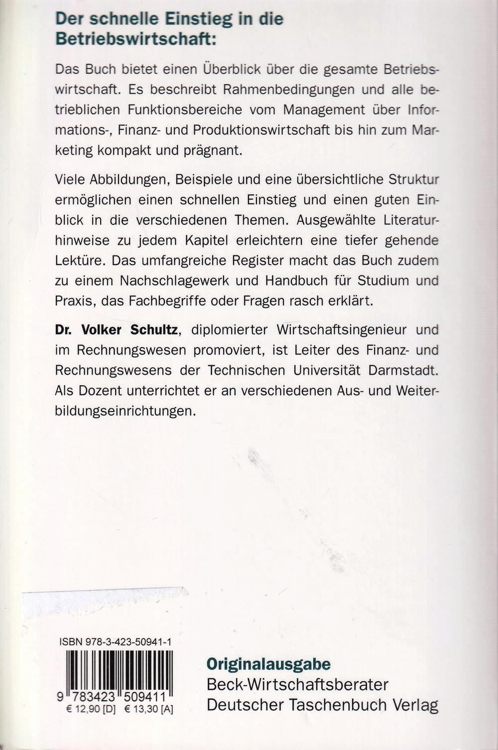 Das Buch bietet einen Überblick über die gesamte Betriebswirtschaft. Es beschreibt Rahmenbedingungen und alle betrieblichen Funktionsbereiche vom Management über Informations-, Finanz- und Produktionswirtschaft bis hin zum Marketing kompakt und prägnant.