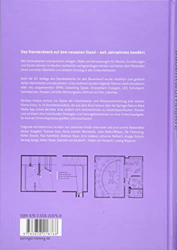 Übersichtliche Funktions-Schemata und Typologien für alle Gebäudearten und Baulichen Anlagen, Masse und Abmessungen für Räume, Einrichtungen und Geräte können im Neufert verlässlich nachgeschlagen werden und bieten dem Planenden einen schnellen Überblick und sicheren Einstieg in alle Entwurfsthemen. Auch die 42. Auflage des Standardwerks für den Bauentwurf wurde inhaltlich und grafisch weiter überarbeitet und aktualisiert. Im Einzelnen wurden folgende Themen stark aktualisiert oder neu aufgenommen: ÖPNV, Coworking Space, Erneuerbare Energien, LED, Schulsport, Sakralbauten, Museen, Serieller Wohnungsbau, Wohnen auf Zeit, Laborbau. Tageslicht und Kunstlicht.