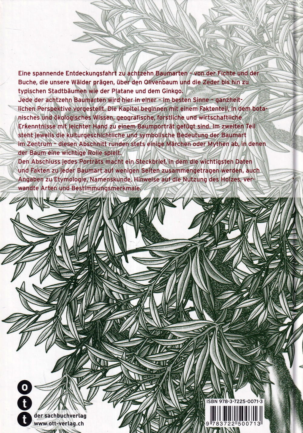Eine spannende Entdeckungsfahrt zu achtzehn prägnanten Baumarten - von der Föhre und der Buche, die unsere Wälder prägen, über Olivenbaum, Feige, Ginkgo und Zeder bis hin zu eher urbanen Arten wie der Platane oder der Pappel. Jeder der achtzehn Bäume wird hier in einer - im besten Sinne - ganzheitlichen Perspektive vorgestellt.Die Kapitel beginnen mit einem Faktenteil, in dem botanisches und ökologisches Wissen, geografische, forstliche und wirtschaftliche Erkenntnisse mit leichter Hand zu einem Baumporträt zusammengefügt sind. Im zweiten Teil steht jeweils die kulturgeschichtliche und symbolische Bedeutung der Baumart im Zentrum - diesen Abschnitt runden stets einige Märchen oder Fabeln ab, in denen der Baum eine wichtige Rolle spielt. Den Abschluss jedes Porträts macht ein Steckbrief, in dem die wichtigsten Daten und Fakten auf wenigen Seiten zusammengetragen werden, auch Angaben zur Etymologie, Namenskunde, Hinweise auf die Nutzung des Holzes, verwandte Arten und Bestimmungsmerkmal