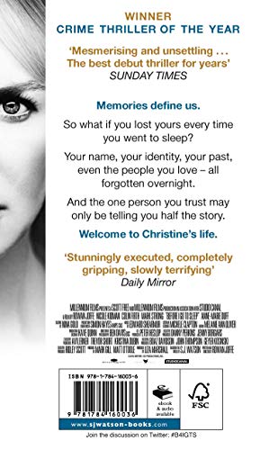 emories define us. So what if you lost yours every time you went to sleep? Your name, your identity, your past, even the people you love - all forgotten overnight. And the one person you trust may only be telling you half the story.