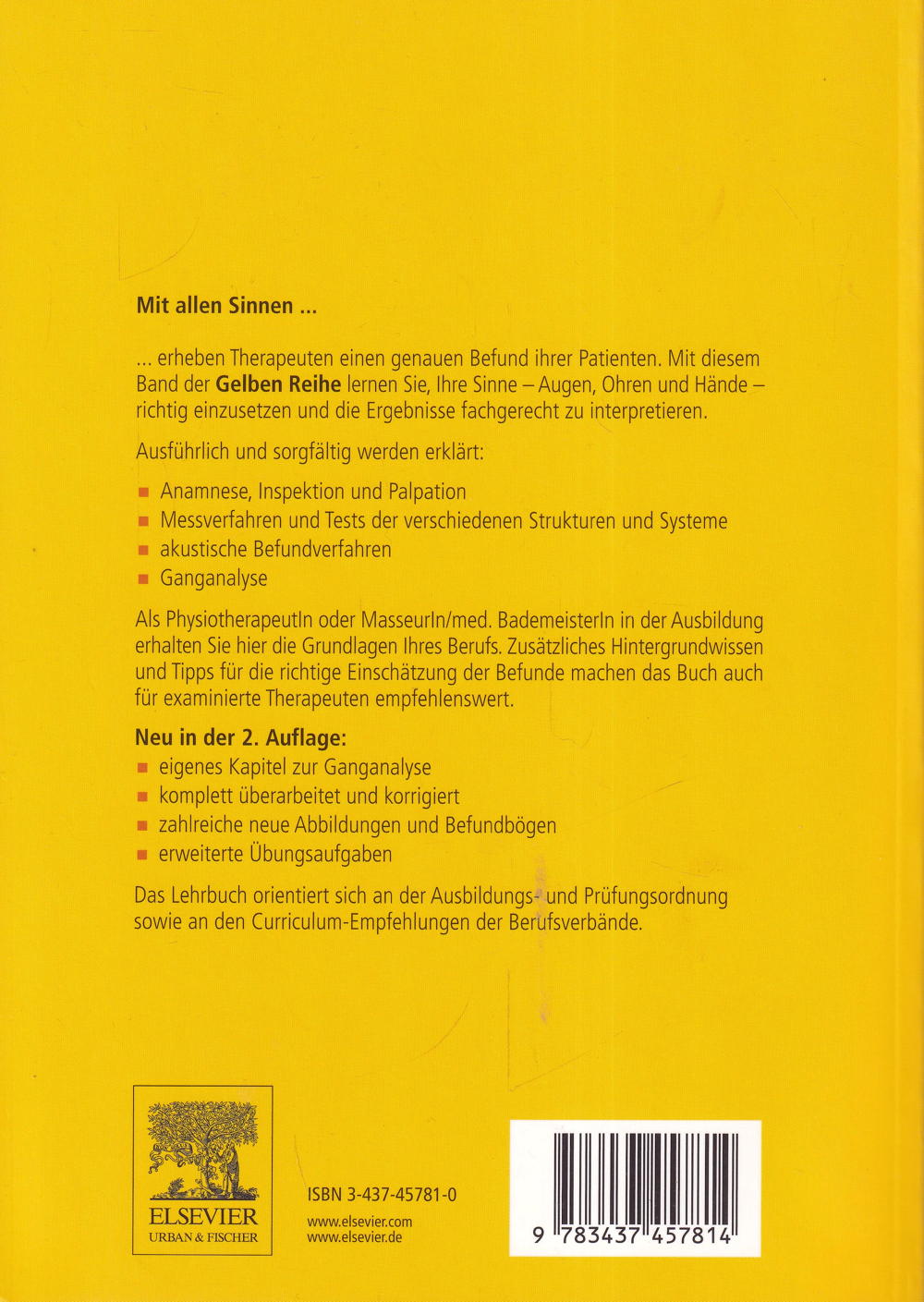 ... Erheben Therapeuten einen genauen Befund ihrer Patienten. Mit diesem Band der Gelben Reihe lernen Sie, Ihre Sinne - Augen, Ohren und Hände richtig einzusetzen und die Ergebnisse fachgerecht zu interpretieren.