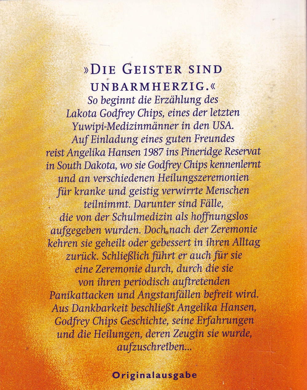 Auf Einladung eines guten Freundes reist Angelika Hansen 1987 ins Pineridge Reservat in South Dakota, wo sie Godfrey Chips kennenlernt und an verschiedenen Heilungszeremonien für kranke und geistig verwirrte Menschen teilnimmt. Darunter sind Fälle, die von der Schulmedizin als hoffnungslos aufgegeben wurden. Doch, nach der Zeremonie kehren sie geheilt oder gebessert in ihren Alltag zurück. Schliesslich führt er auch für sie eine Zeremonie durch, durch die sie von ihren periodisch auftretenden Panikattacken und Angstanfällen befreit wird.