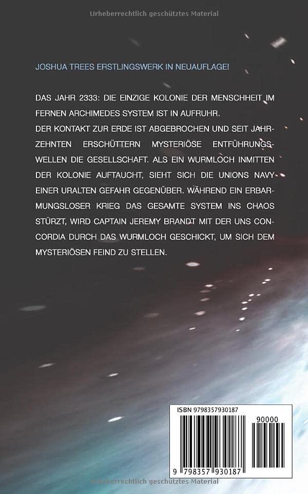 Das Jahr 2333: Die einzige Kolonie der Menschheit im fernen Archimedes System ist in Aufruhr. Der Kontakt zur Erde ist abgebrochen und seit Jahrzehnten erschüttern mysteriöse Entführungswellen die Gesellschaft. Als ein Wurmloch inmitten der Kolonie auftaucht, sieht sich die Unions Navy einer uralten Gefahr gegenüber. Während ein erbarmungsloser Krieg das gesamte System ins Chaos stürzt, wird Captain Jeremy Brandt mit der UNS Concordia durch das Wurmloch geschickt, um sich dem mysteriösen Feind zu stellen. Dieses Buch erschien 2017 in zwei Teilen mit den Titeln Das Jupiter Ereignis und Der Hyperraum-Krieg und wurde mit neuen Covern und zusammengefassten Bänden neu aufgelegt.