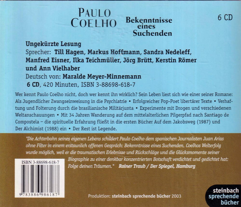 Paulo Coelho ist neben Gabriel García Márquez einer der bekanntesten lateinamerikanischen Schriftsteller - ein Kultbuch-Autor. Seine Themen sind durch eigene Erfahrungen geprägt und berühren uns durch seine einfühlsame Sprache. Dem spanischen Journalisten Juan Arias schilderte Coelho in einem erstaunlich offenen Gespräch sein Leben.
