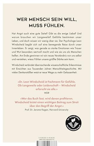 Wer Mensch sein will, muss fühlen. Der Psychologe Leon Windscheid begibt sich auf eine bewegende Reise durch unser Innenleben. Gefühle bestimmen unser Leben, und doch wissen wir wenig über sie. Windscheid geht den Fragen nach, ob Angst auch eine gute Seite hat, ob es die ewige Liebe gibt, und wofür wir eigentlich Langeweile brauchen? Er zeigt, was gerade so starke Emotionen wie Trauer und Wut besonders wertvoll macht und wie sie uns als Menschen helfen. Am Ende gewinnen wir ein neues Verständnis von uns selbst und verstehen, wieso Fühlen unsere grösste Stärke sein kann. Windscheid verbindet überraschende wissenschaftliche Erkenntnisse mit Einsichten aus Tausenden Jahren Menschheitsgeschichte. Mit vielen Denkanstössen weist er neue Wege zu mehr Gelassenheit.